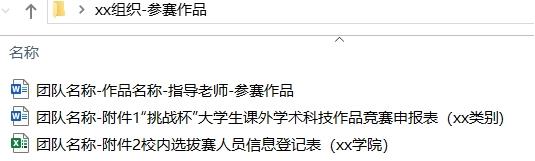 1.团队名称-作品名称-指导老师-参赛作品(如果参赛作品中资料较多,则以文件夹命名/若仅有一份word材料,则以团队名称-作品名称-指导老师-参赛作品.doc);