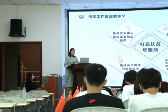 第二讲由智能金融学院团总支书记邓嘉婷讲解《朝梦引帆,扶贫济世》。邓嘉婷从“你们认为什么是贫困?”引入话题,将中国是如何打好这场脱贫攻坚战以及取得的伟大成果呈现在同学们眼前,播放的视频发人深思,感动中国人物的自我奉献精神正源源不断地注入到每位学子心中。2022年是巩固脱贫攻坚成果的一年,全面脱贫是崭新的起点,各位团员应不忘初心、牢记使命,投身到新时代社会主义建设中。第一天的培训在各学习小组此起彼伏的分享声中结束。