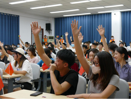 随后晚会进入第三项,获奖团队代表人上台分享心得和体会。首轮分享的是实践赛道铜奖的代表发言人鲜翠,她们团队为大家带来的是《微距志愿服务》项目。此项目采用线上为主线下为辅的方式开展,高效的将志愿服务与党史学习教育宣讲活动相结合,并充分利用各大高校媒体平台,积极传播爱党、敬党精神。接下来是志愿者练新雅、韦涵潇两位同学为代表的创投赛道铜奖获得项目《助力老人再就业》,绘声绘色的展示让听众了解到发展“银发经济”的重要性,现如今老年人也是需要关注的群体,鼓励老年人再就业,积极为社会作出贡献。为普及志愿服务领域相关常识,晚会精心设置了互动环节,让观众在互动参与中共同进步。