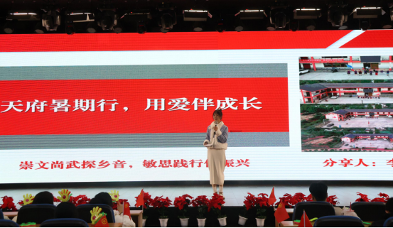 在晚会的分享环节中,实践团队和个人也借此机会分享了在本次活动中的收获和感悟,天府学子们绘声绘色的讲述着自己在实践过程中的独特经历,深入基层,在实践中厚植爱国情怀,切实做到“用脚丈量祖国大地,用内心感应时代脉搏”,以自己的实际行动践行着“走进基层人民,助力乡村振兴”的青春誓言。每一位分享人都在最后呼吁全体天府学子,要以砥砺奋进、不负韶华的劲头,争做乡村振兴的践行者和先锋队,让坚定的理想信念成为筑梦之旅的有效指南。