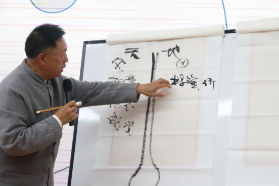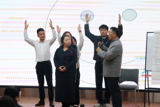 为了更生动的演绎“自”、“我”、“肉”之间的关系,格桑教授用板书图示来解释,并在现场邀请了五位老师配合演示。通过格桑教授的讲解和老师们生动的演绎,与会师生直观的感受到了“抑郁症”“自闭症”等常见心理疾病的表现特征与应对方式,更加深刻的体会了“自我”。