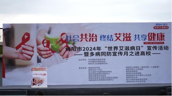 为加深大学生对艾滋病的认识,增强对艾滋病的防控意识,中共绵阳市委宣传部、中共绵阳市委网信办、绵阳市卫生健康委员会联合绵阳师范学院、西南科技大学、西南财经大学天府学院、四川中医药高等专科学校、绵阳市疾病预防控制中心、绵阳市妇幼保健院等单位,于12月6日举办了一场以“社会共治,终结艾滋,共享健康”为主题的宣传活动。此次活动形式丰富多彩,在吸引大量学生踊跃参与的同时,也普及了艾滋病的预防知识,倡导广大学子养成健康生活方式。