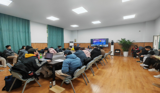 在互动答疑阶段,学子们积极举手提问,所提问题涵盖项目选题新颖性把控、团队成员合作搭档的合理性、如何平衡学业与备赛时间等诸多方面,王天泽针对学子的提问耐心地进行解答,对各学子的踊跃发言与认真思考表示肯定,现场交流氛围达到高潮。