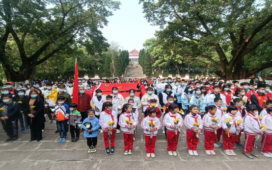 4月3日上午,志愿者代表讲话宣告活动开始,志愿者们手捧鲜花,身着整齐衣装,怀着沉重的心情有序排列在烈士的墓碑前,传递着后辈对先烈的崇高敬意。少年是祖国的花朵,祖国的伟大来自于革命先烈的努力,少先队员和志愿者依次上前献花并致以真挚的谢意与崇高的敬意。此后,全体人员肃立,向先辈们脱帽默哀3分钟。礼毕,志愿者们庄严宣誓:“热爱祖国,坚决拥护中国共产党的领导,执行团的决议,履行团员义务”。慷慨激昂的誓言飘荡在烈士陵园上空,是志愿者向先烈们的郑重保证,更是后辈对先辈的无尽感激。