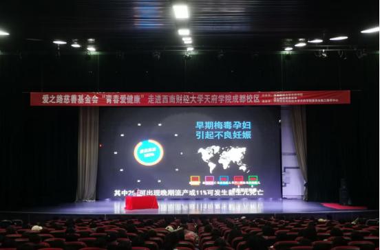 为进一步做好校园艾滋病预防工作,帮助青少年认识生命的珍贵,学会正确处理两性关系,树立道德和法律观念,增强对自己行为的责任感。共青团西南财经大学天府学院委员会携易班学生工作站特于2023年3月15日晚上19:00在成都东区学术报告厅举行“爱之路——青春爱健康”艾滋病防控暨性健康教育讲座活动。本次活动有幸邀请到四川大学华西医院医学博士、四川大学华西医院博士生导师冯莉教授及德兰光明慈善基金会团队。