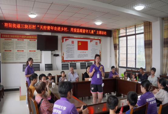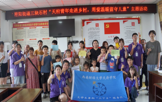 为深入学习和贯彻习近平总书记关于妇女儿童工作的重要指示精神,以实际行动助力乡村振兴,给当地的困境儿童营造既温暖快乐又健康向上的社会氛围,近日,西南财经大学天府学院校团委天府青年队来到泸州市合江县符阳街道三块石村村委会活动中心,开展了“天府青年走进乡村,用爱温暖留守儿童”主题活动。