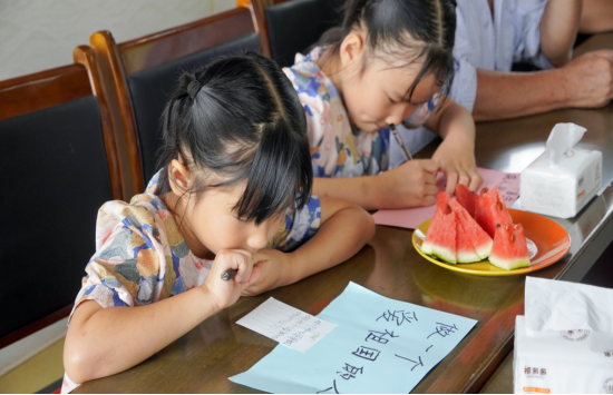 在最后的互赠寄语环节,实践队员和小朋友们纷纷写下对对方的真挚祝福和美好期盼。税小琴也借此表示,无论是志愿者大朋友还是小朋友们,都希望大家快乐、平安地长大,找到自己的理想与热爱,积极投身到为社会做贡献的事业当中去,成为更加勇敢的大人。