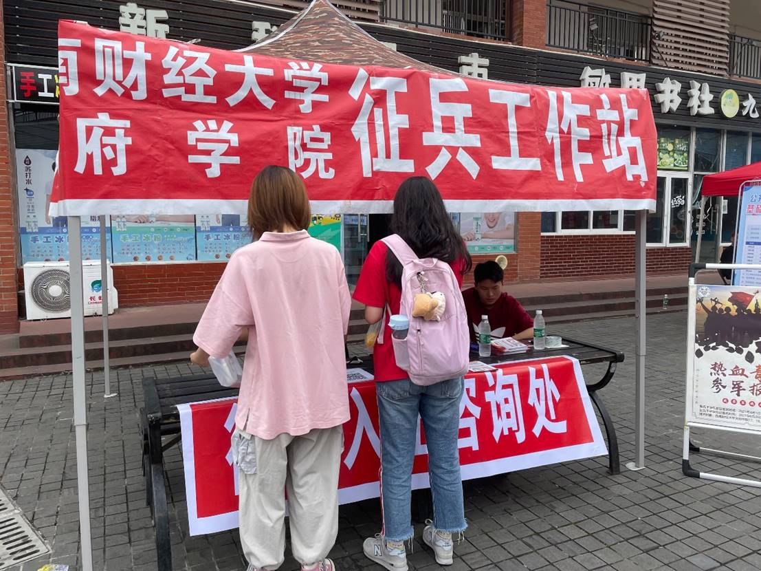 为积极响应党和国家的号召,贯彻落实征兵政策,切实做好2021年下半年大学生应征入伍工作,西南财经大学天府学院征兵工作站于5月20日在商业街进行了征兵政策答疑宣传活动,为天府学子讲解征兵政策,解答相关疑惑。