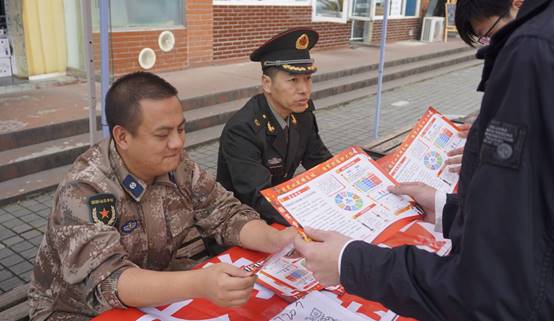 4月11日上午,武装部的工作人员来到学校商业区,他们耐心的解答同学们对征兵事宜的问题,给同学们讲解了征兵义务及其各方面要求等内容,以榜样的形式激励着广大学子应征入伍、报效祖国、成就自我。商业区一旁竖立着为本次活动准备的签名墙,同学们在签名墙上写下自己的名字,寄托了对征兵工作的支持与美好祝愿,以及对军人这一职业的崇高敬意。
